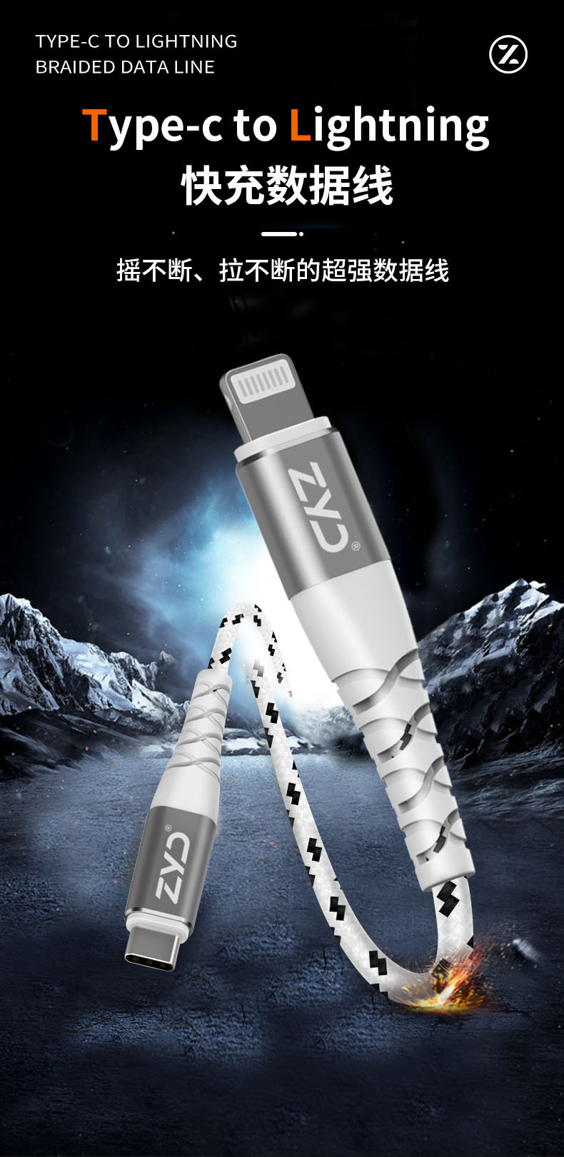 【挚客】苹果MFI认证抗拉超高分子聚乙烯编织快充数据线适用于iPhone13/12/8/8P/XS手机