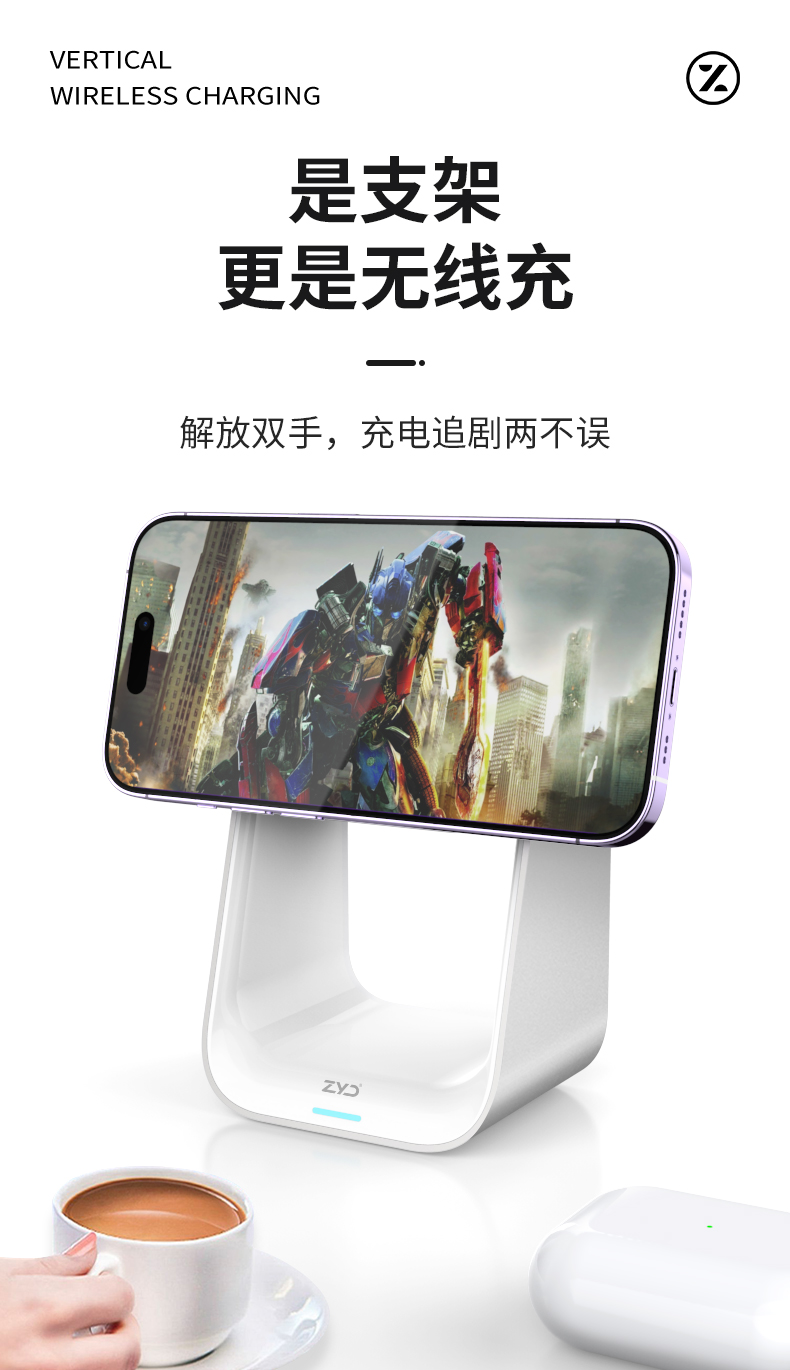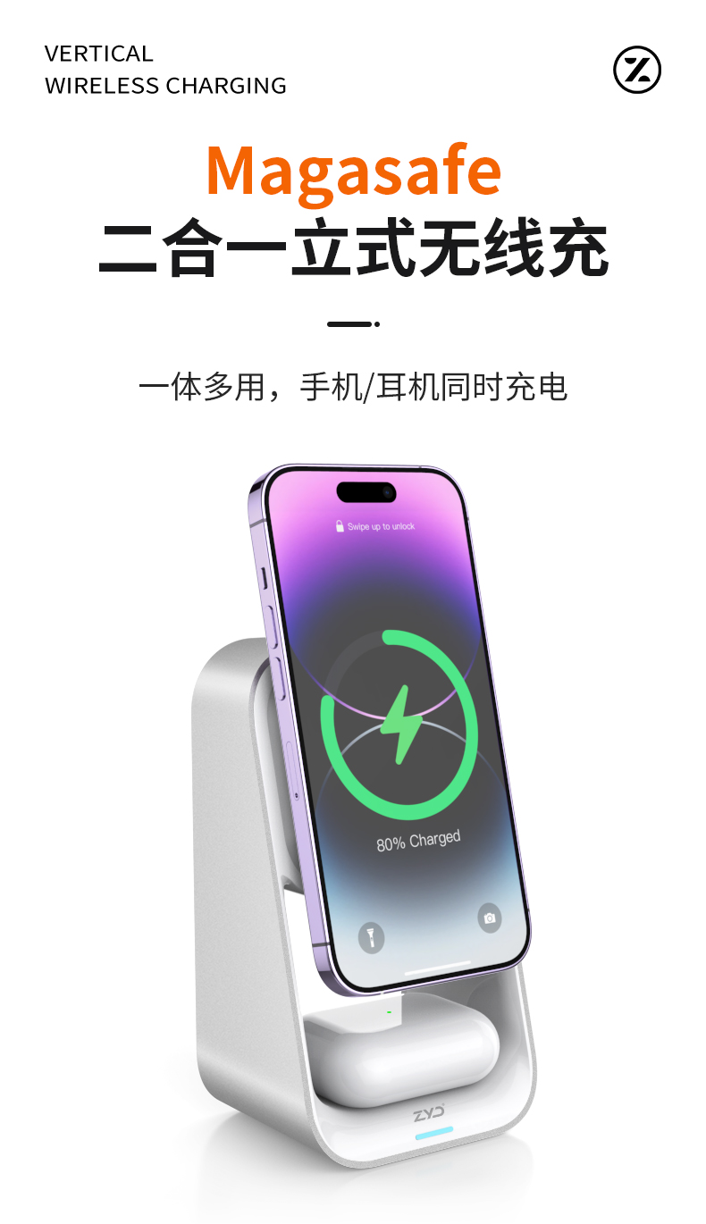 【挚客】苹果MagSafe无线充电器二合一适用于iphone8p/x/11/12/13/14promax快充15W通用air pods快充电器桌面手机支架