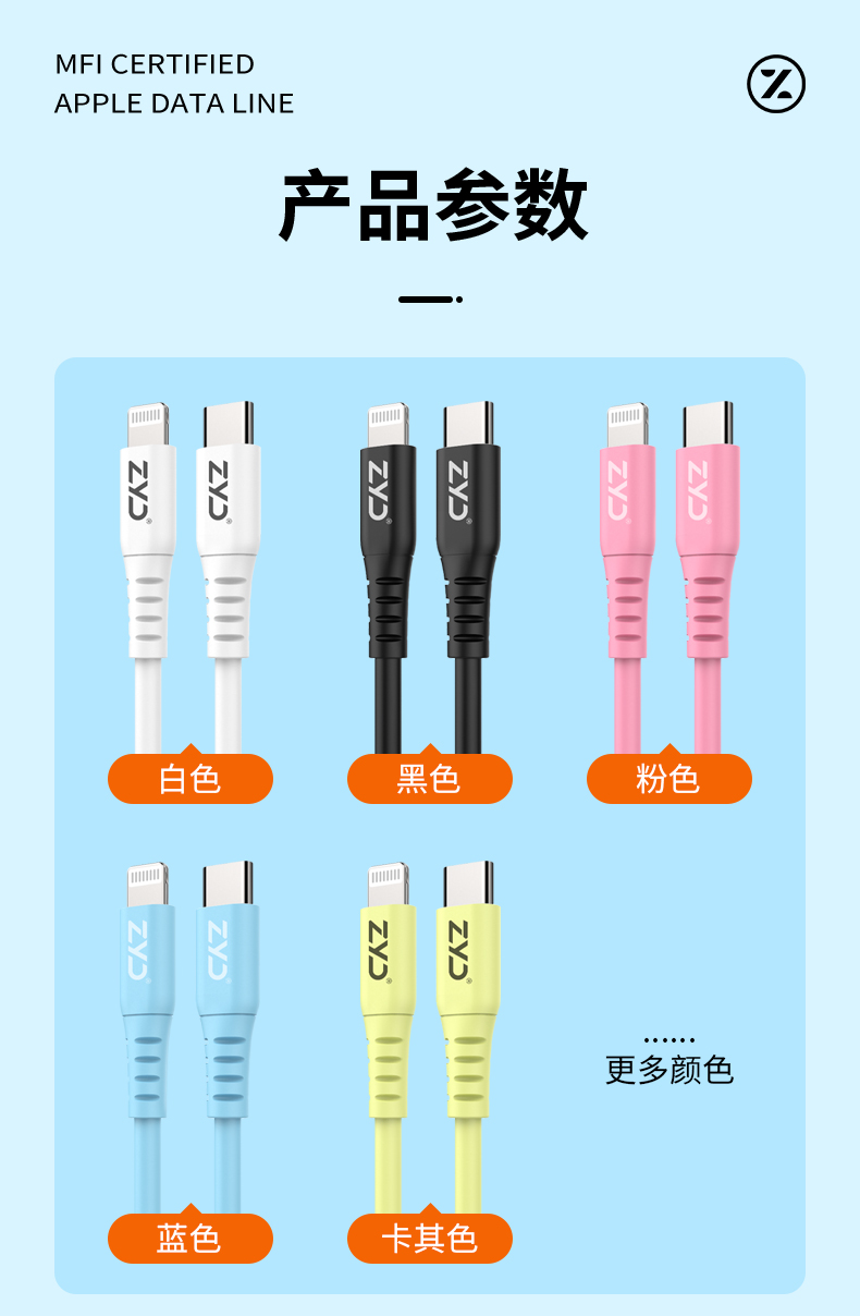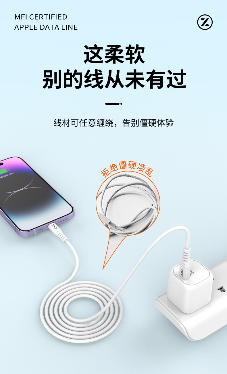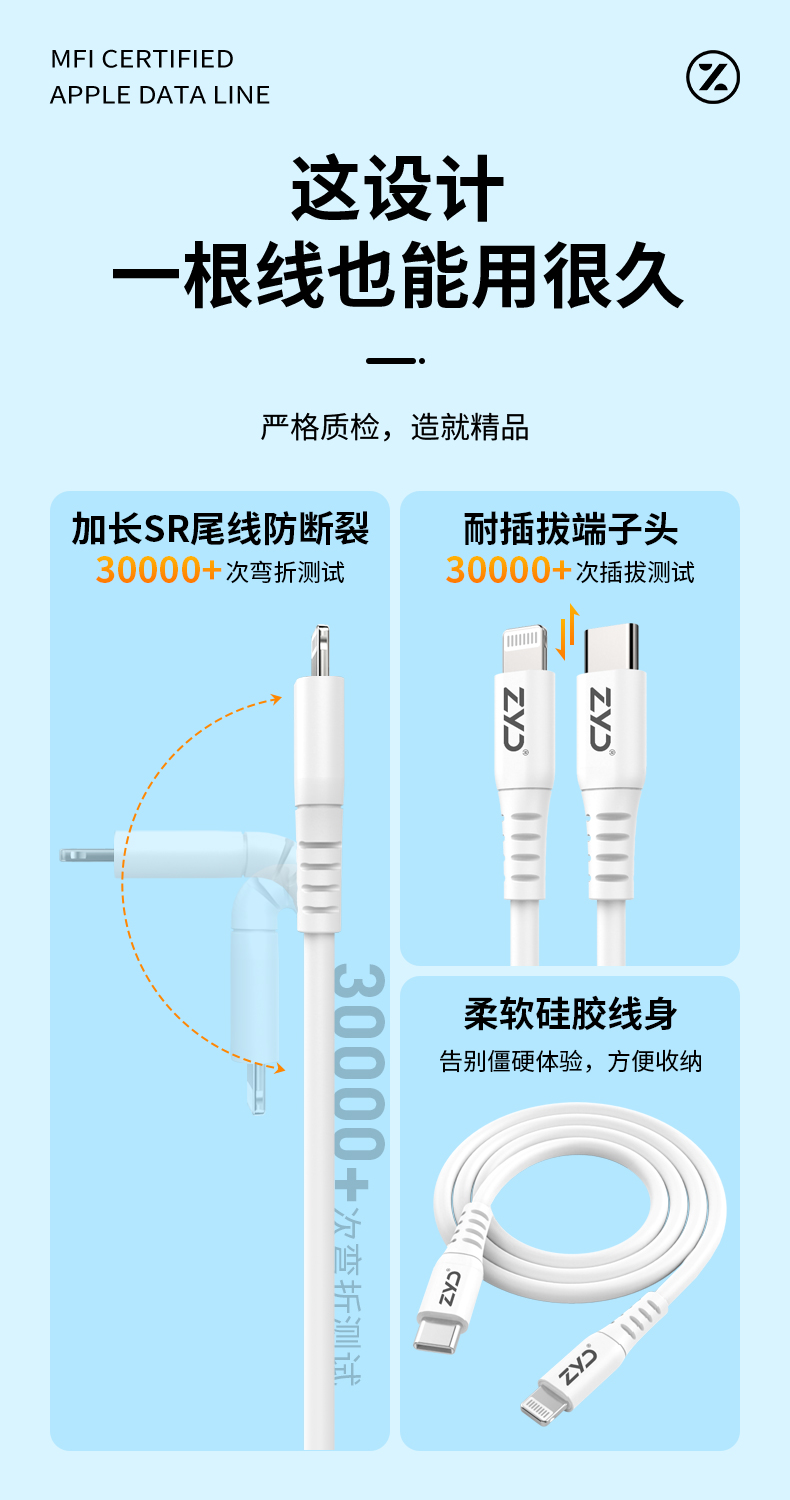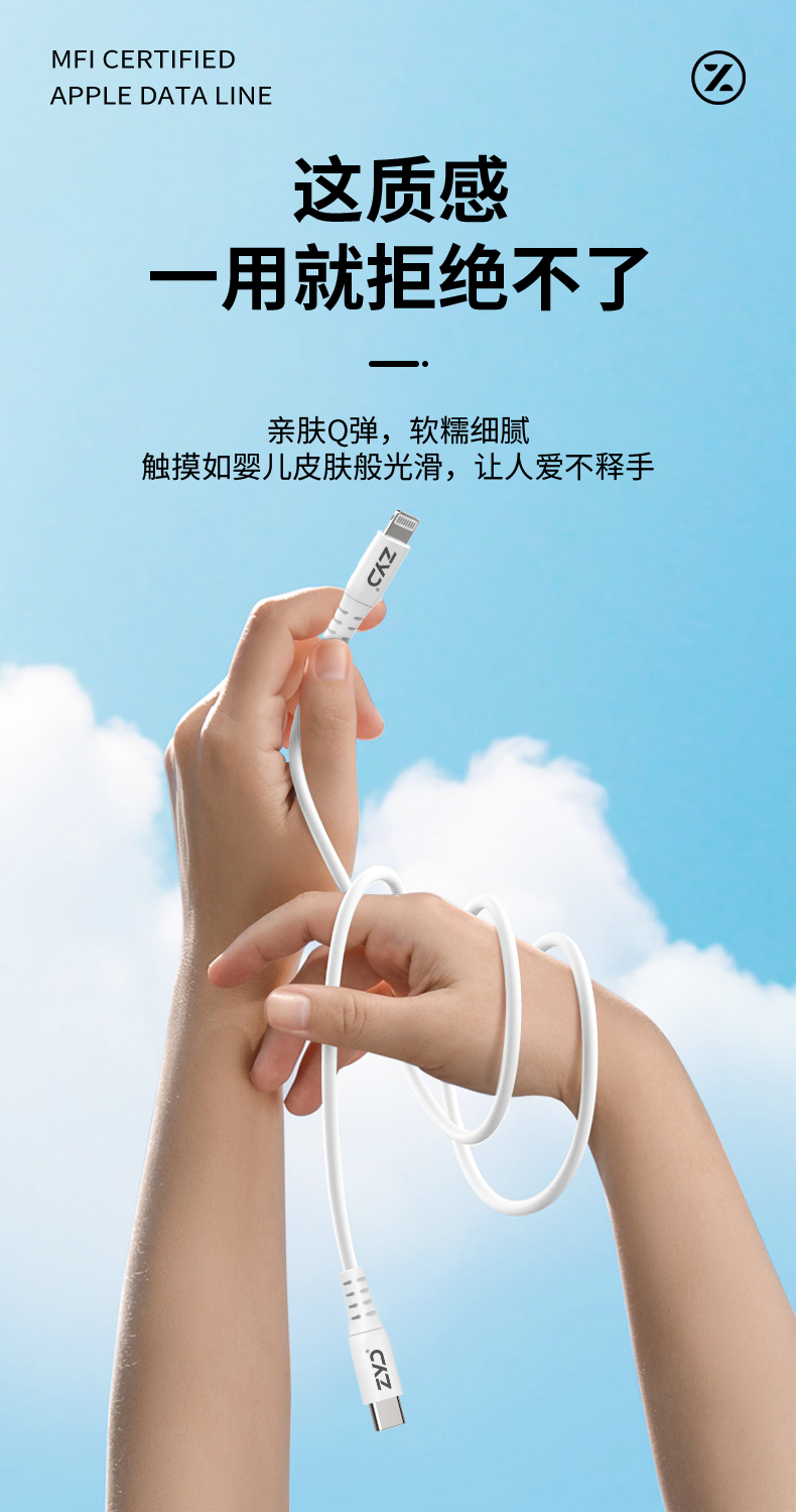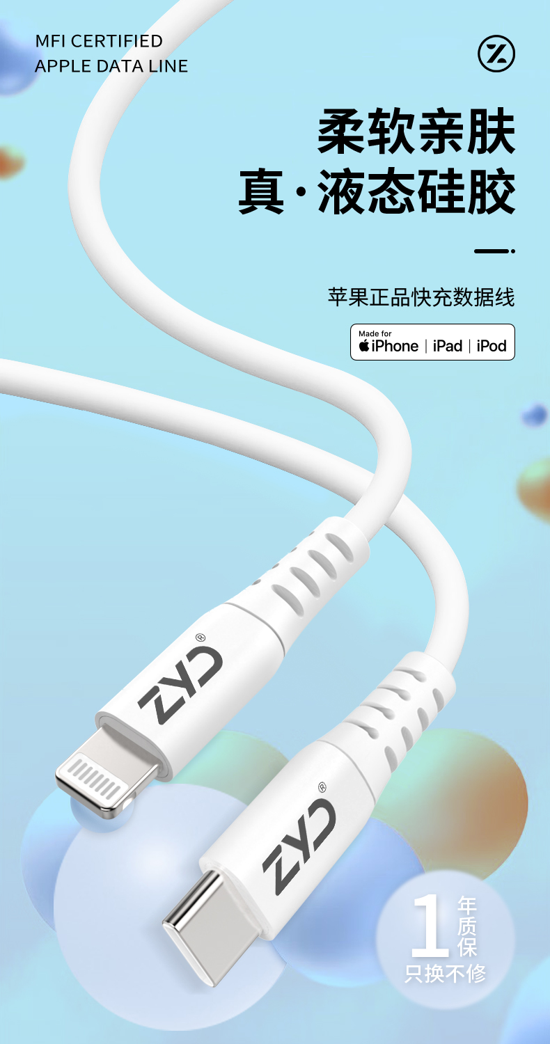挚客液态硅胶pd快充mfi认证数据线适用苹果14promax手机iphoneSE3新款27W充电线
