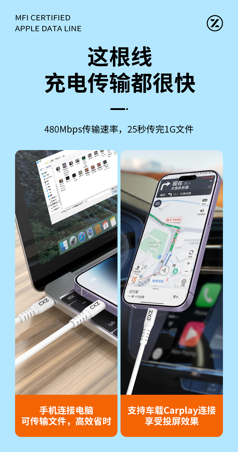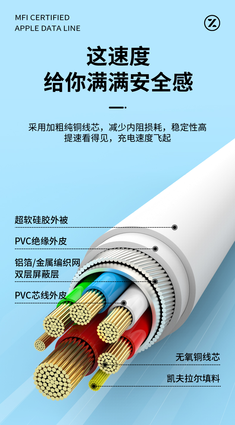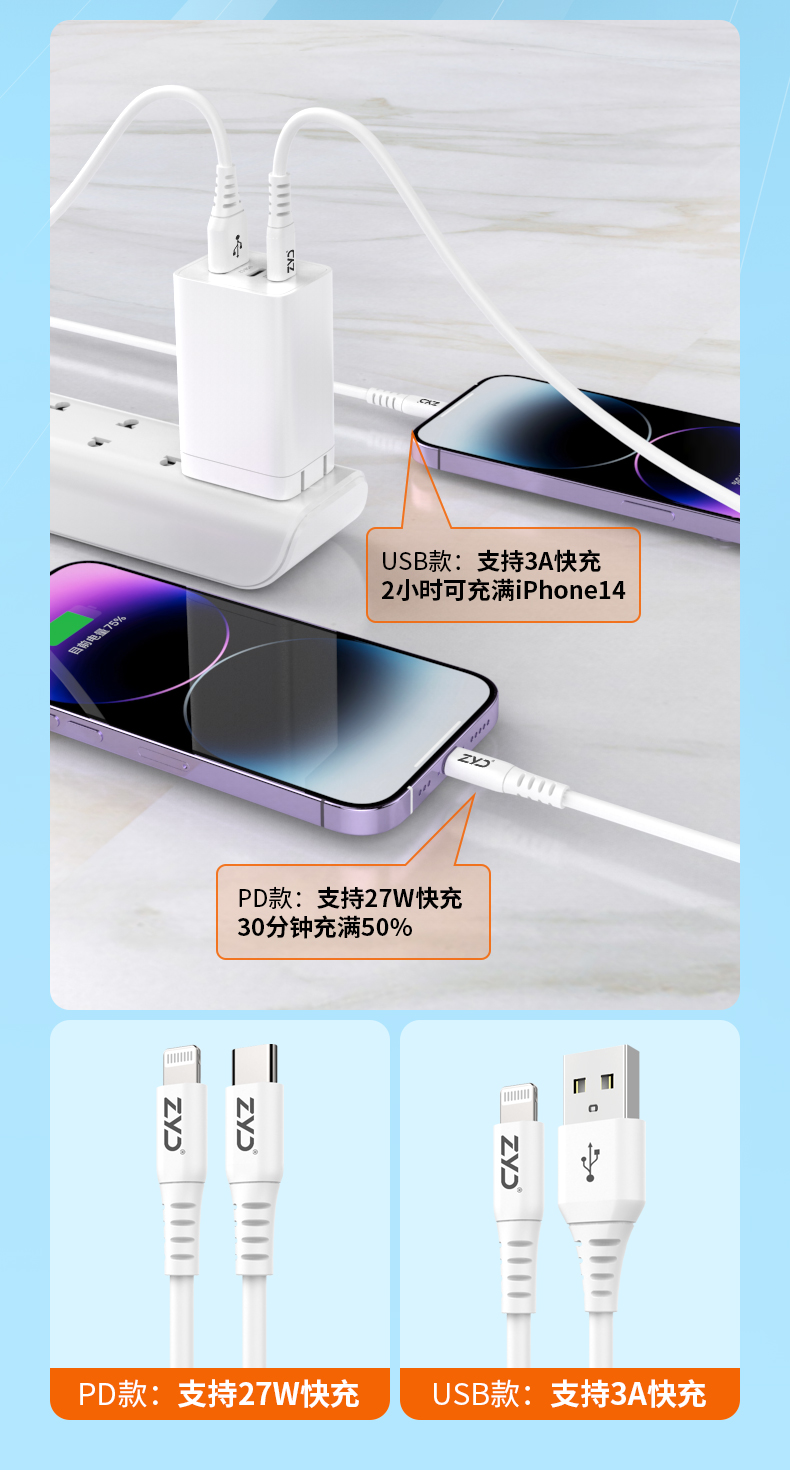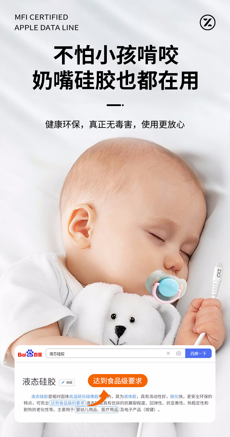 挚客液态硅胶pd快充mfi认证数据线适用苹果14promax手机iphoneSE3新款27W充电线